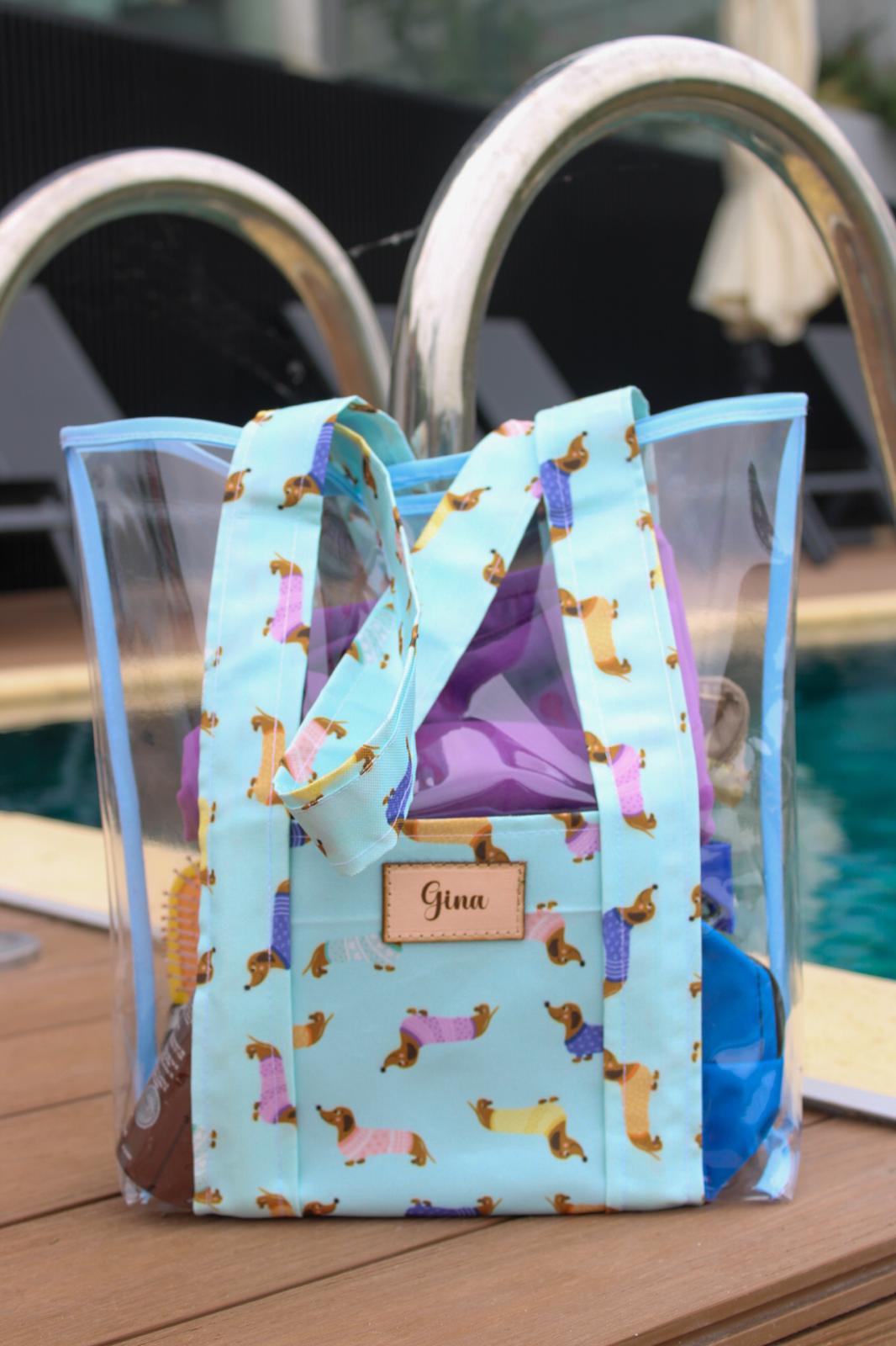 Cuenta con bolsillo externo con diseño salchichas en tono celeste y asas resistentes que facilitan su uso diario. Es amplio, cómodo y perfecto para llevar todo lo necesario a la playa o la pileta con un toque divertido y original.